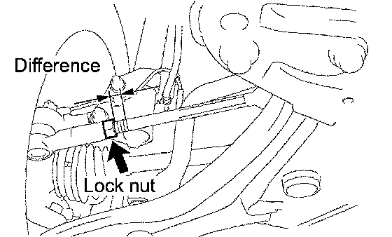 NOTICE: Temporarily tighten the lock nut while holding the hexagonal part of the steering rack end so that the lock nut and the steering rack end do not turn together. Hold the flat section of the tie rod end and tighten the lock nut.