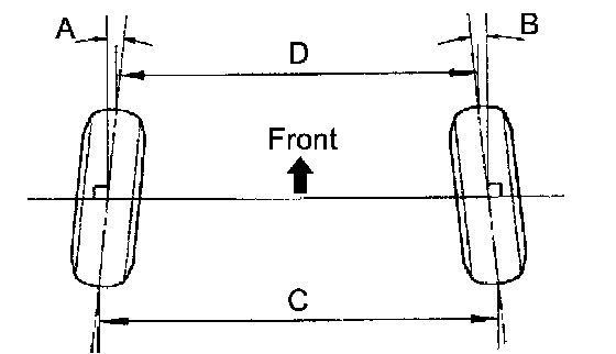 If the toe-in is not within the specified value, inspect and replace the suspension parts as necessary.