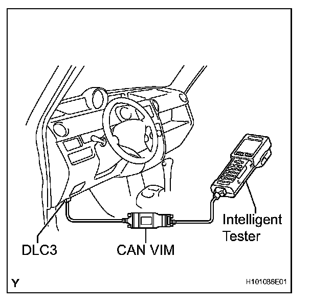 Connect the cable of the intelligent tester to the DLC3, turn the ignition switch ON and attempt to use the tester. If the display indicates that a communication error has occurred, there is a problem either with the vehicle or with the tester.