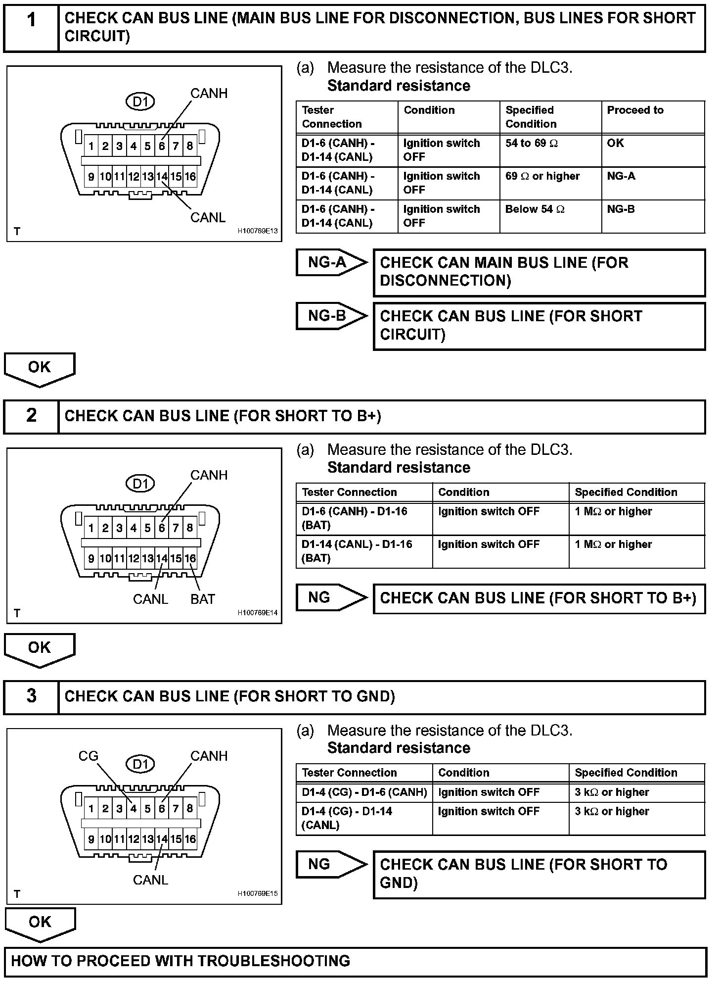 When a CAN communication DTC is output, first measure the resistance between the terminals of the