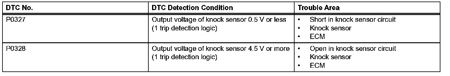 HINT: When any of DTCs P0327 and P0328 are set, the ECM enters fail-safe mode. During fail-safe mode, the ignition timing is delayed to its maximum retardation. Fail-safe mode continues until the ignition switch is turned OFF.