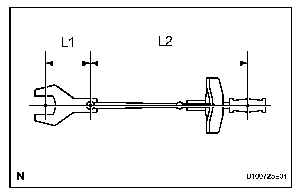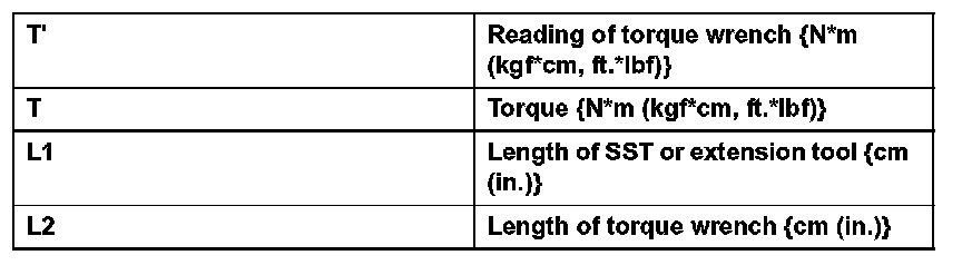 1. Use the formula below to calculate special torque values for situations where SST or an extension tool is combined with the torque wrench.