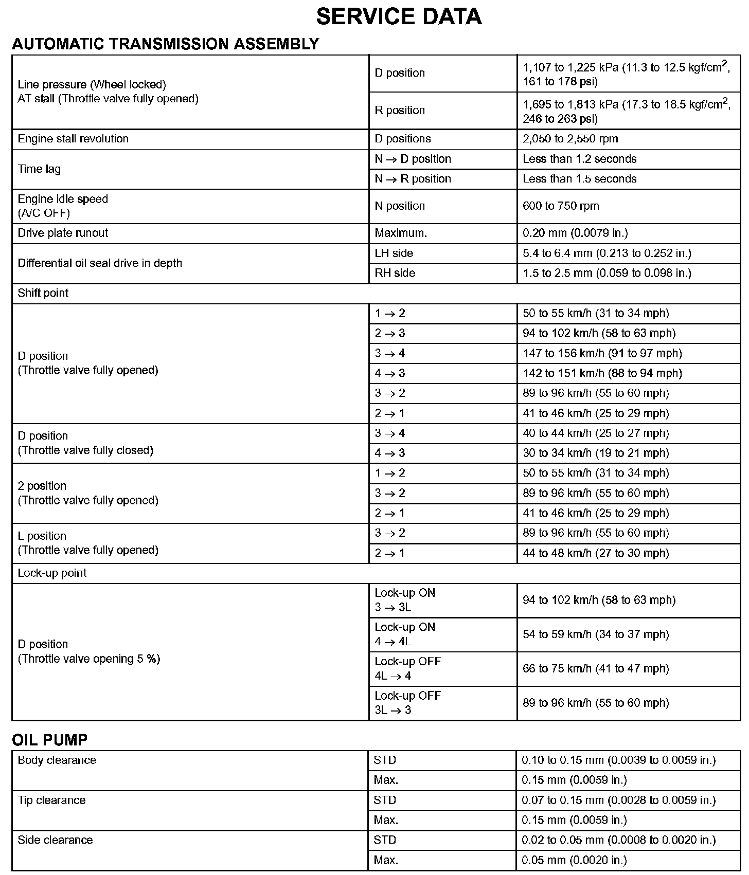 Automatic Transmission-Service Data (Part 2):