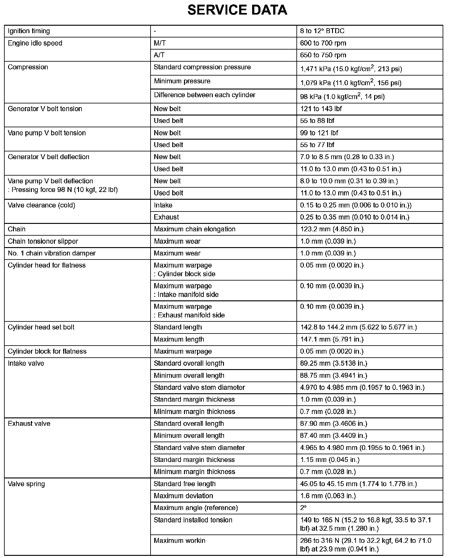 Engine Mechanical-Service Data (Part 1):