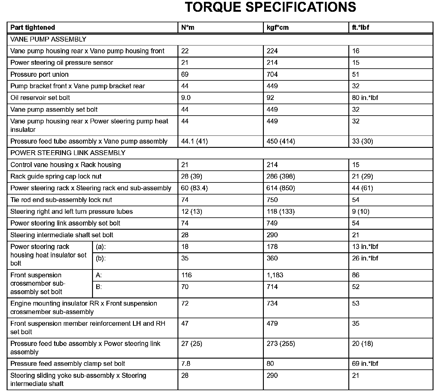 Power Steering-Torque Specifications: