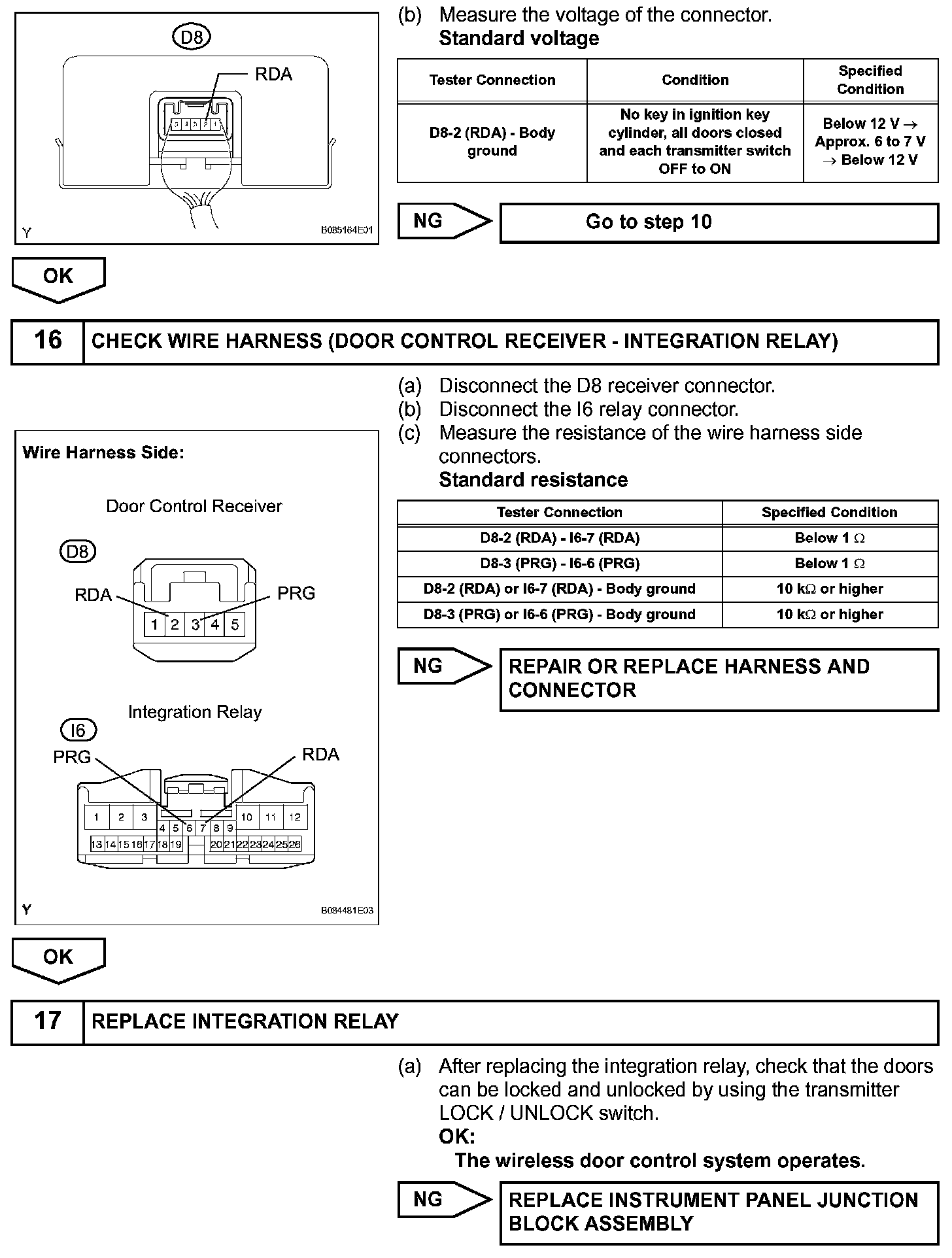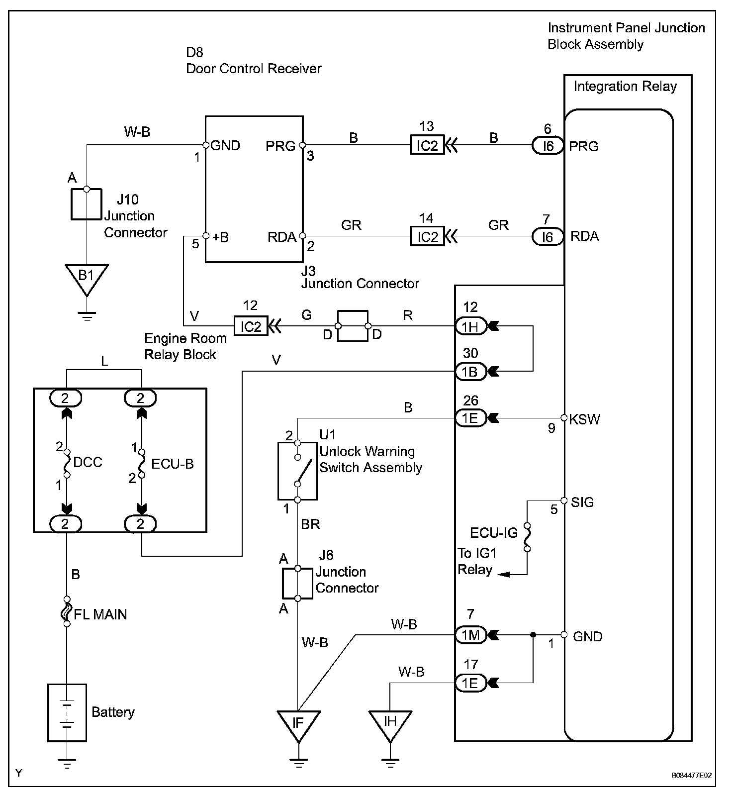 The door control receiver receives signals from the transmitter and sends these signals to the integration relay. The integration relay then controls all the doors by sending LOCK / UNLOCK signals to each door lock actuator.