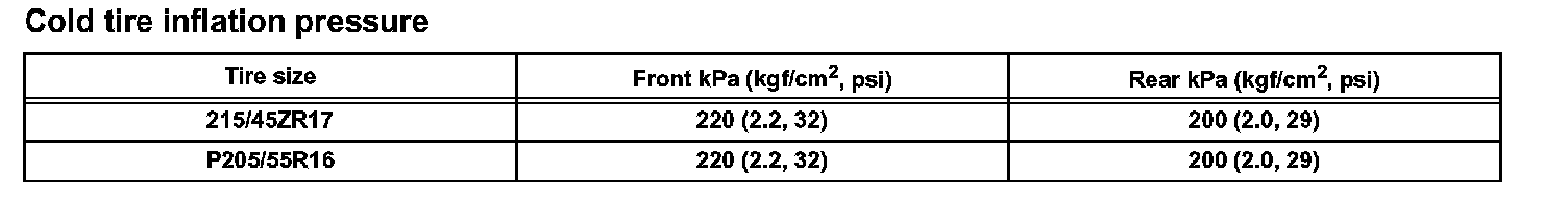 ^ Specified tire pressure changes depending on the size or type of the tire.
