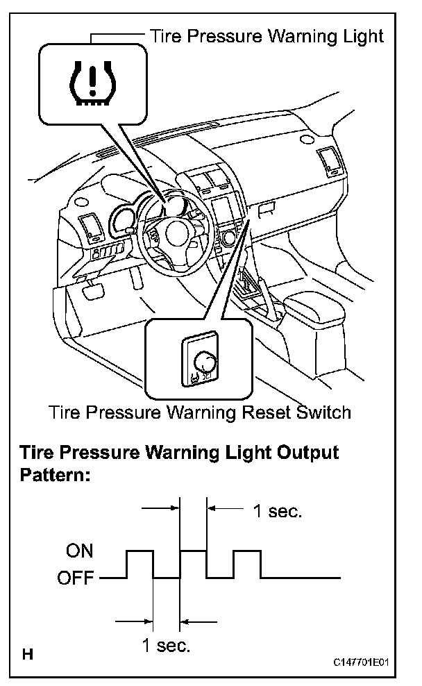 (f) Check that the tire pressure warning light blinks 3 times (1 second ON, 1 second OFF).