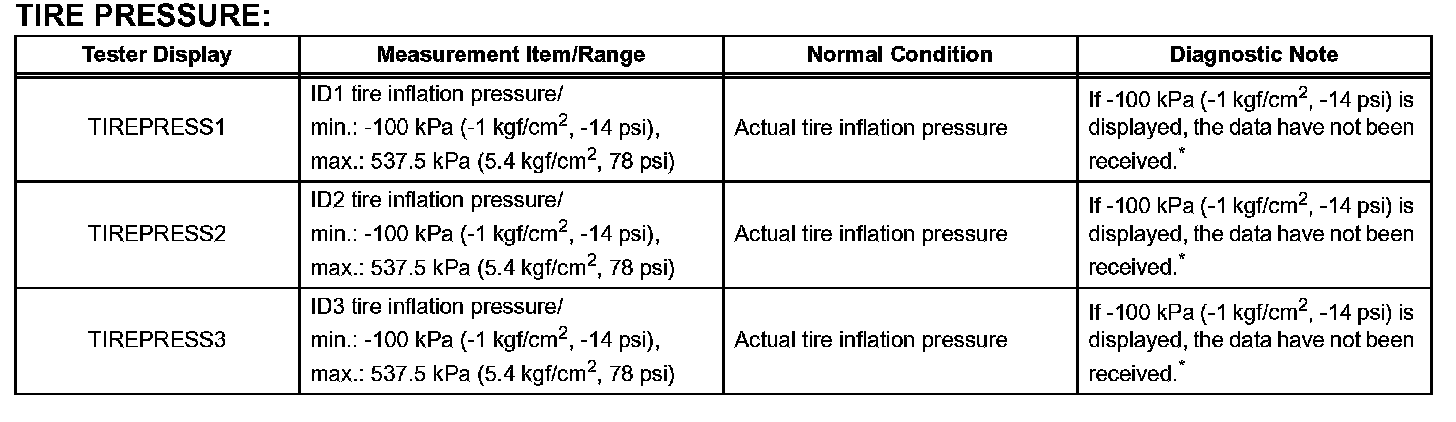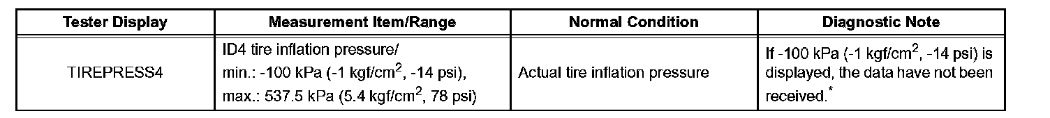 (a) Confirm that the data of tire pressure of all tires are displayed on the intelligent tester screen.