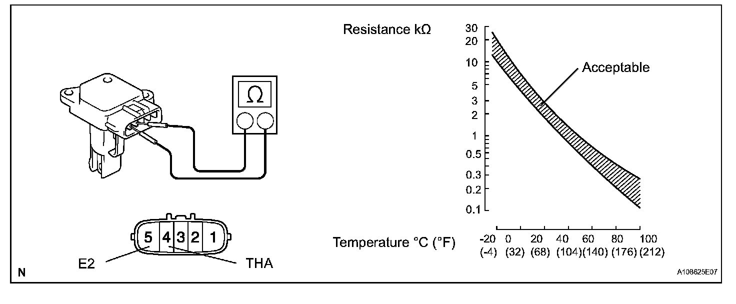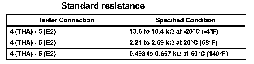 1. Using an ohmmeter, measure the resistance between the terminals 4 (THA) and 5 (E2).