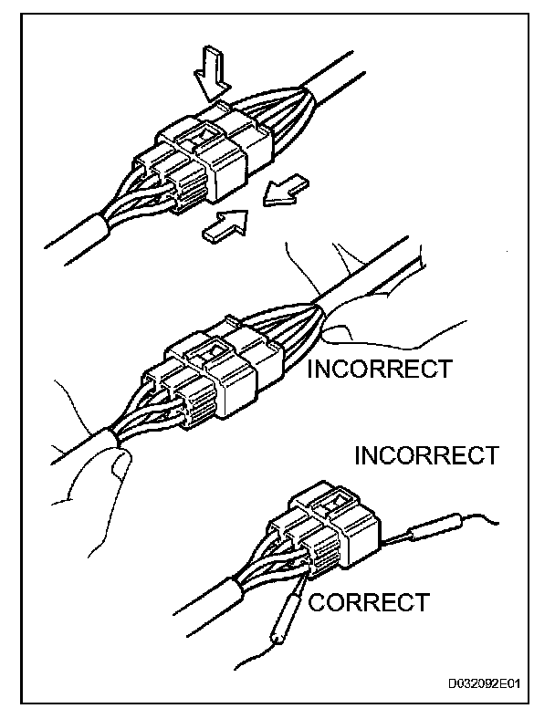 - As a waterproof connector cannot be checked from the backside, check it by connecting a sub-harness.