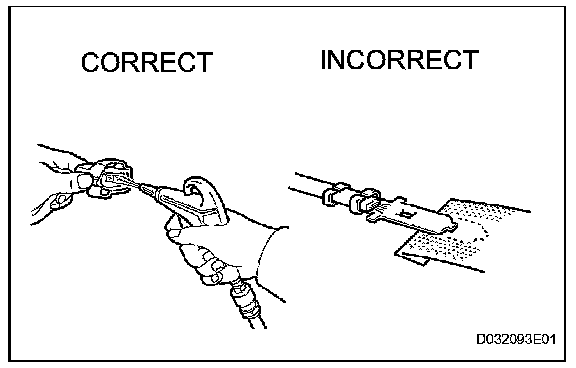 5. If checking a connector with a TOYOTA electrical tester, check the connector from the backside (harness side) using a mini test lead.