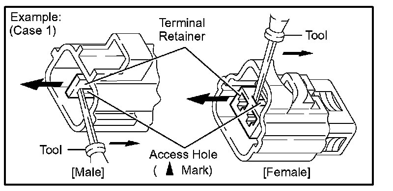 Type which cannot be pulled as far as Power Lock insert the tool straight into the access hole of terminal retainer as shown.