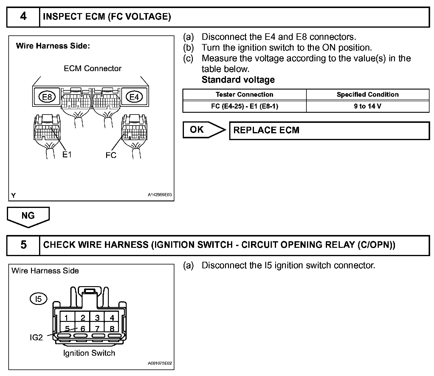 When the engine is cranked, a current flows from terminal ST2 of the ignition switch into the starter relay (Marking: ST) coil and a current also flows into terminal STA of the ECM (STA signal).