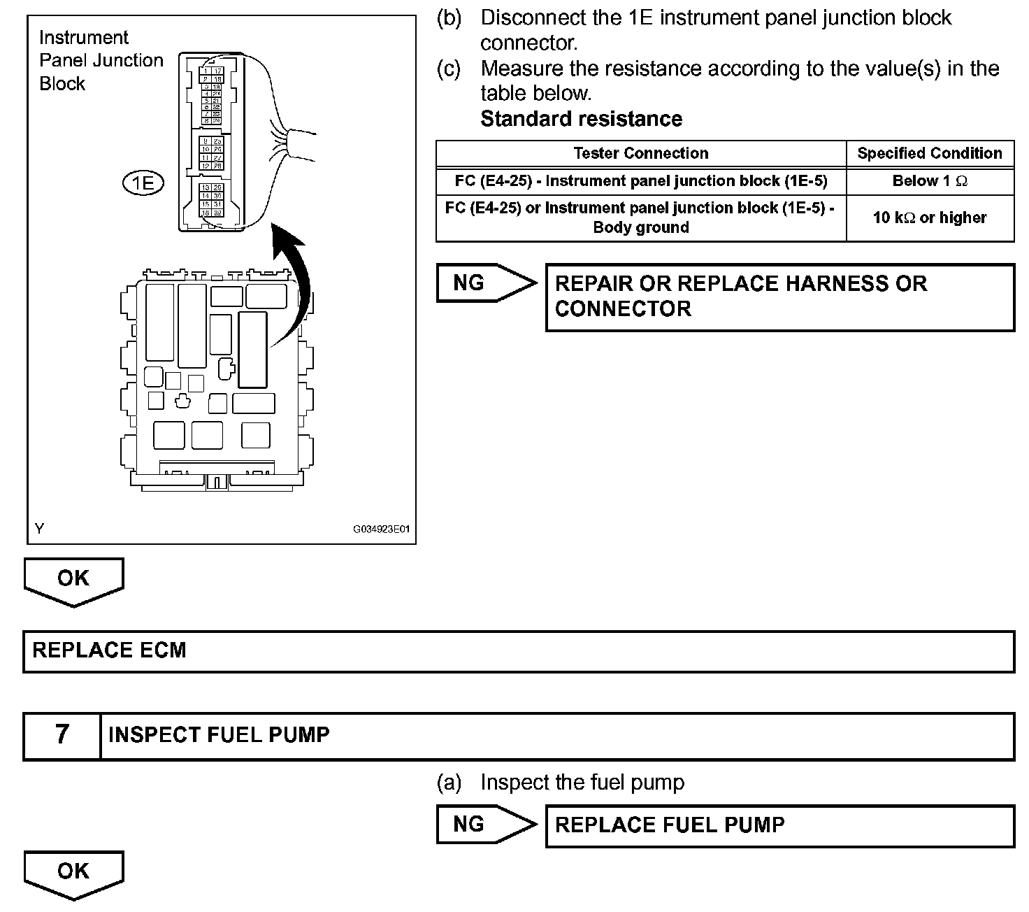 While the NE signal is being generated (engine running), the ECM keeps Tr ON, therefore keeping the circuit opening relay ON, so that the fuel pump continues to operate. Fuel Pump Control Circuit