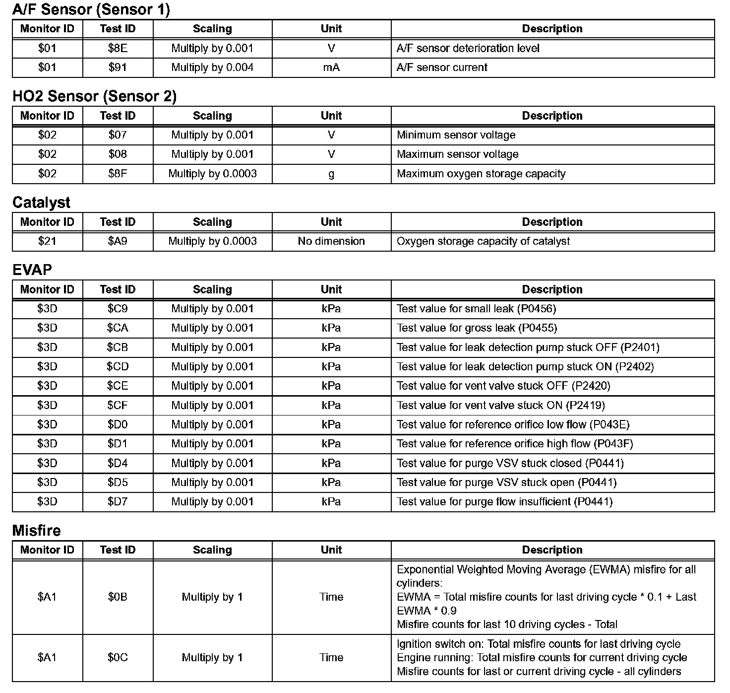 If you use a generic scan tool, multiply the test value by the scaling value listed.