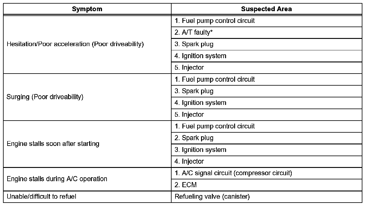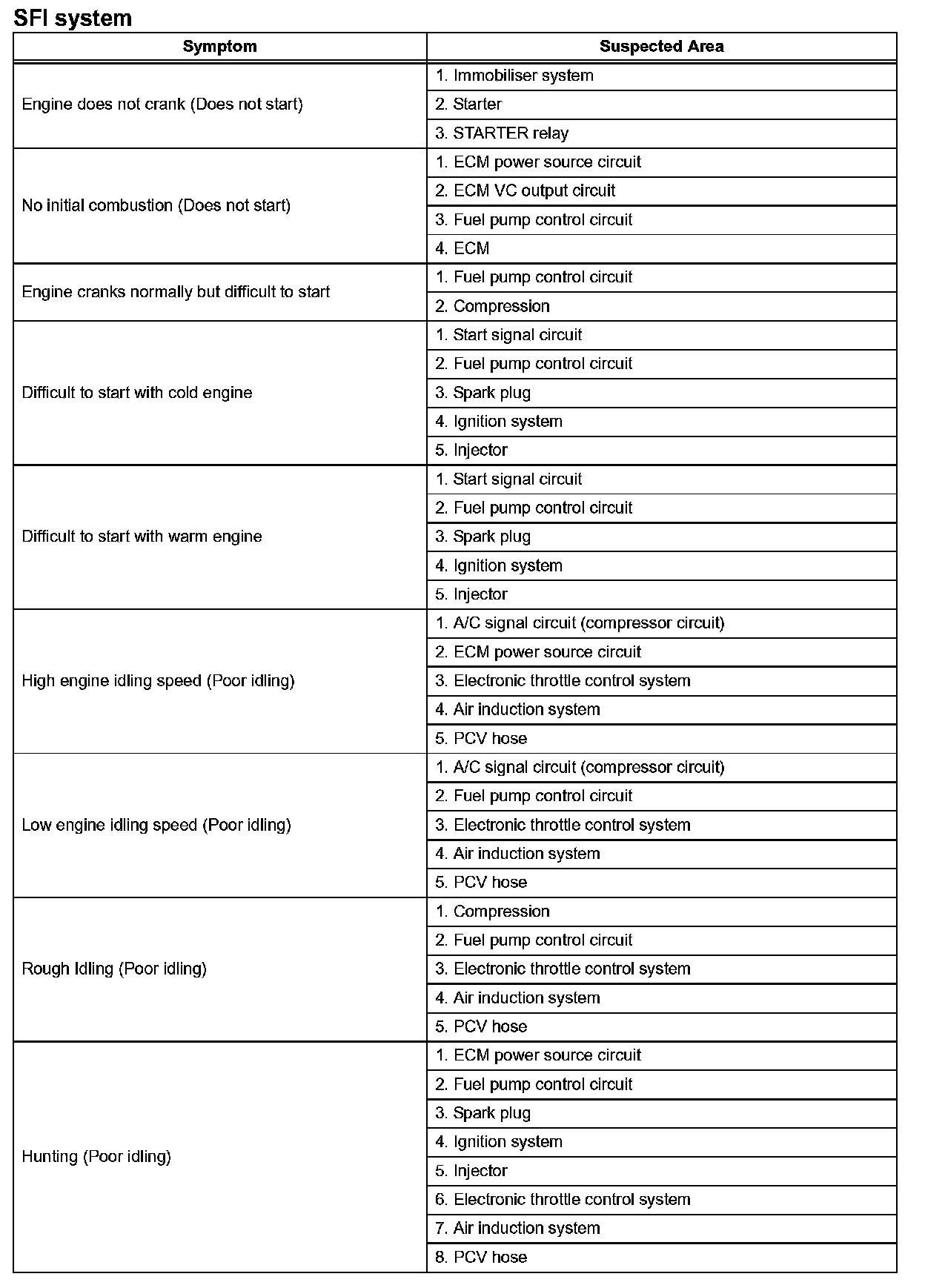 HINT: When a malfunction is not confirmed by a DTC (Diagnostic Trouble Code) check and the cause of problem cannot be identified through a basic inspection, troubleshoot according to the priority order indicated in the table given.