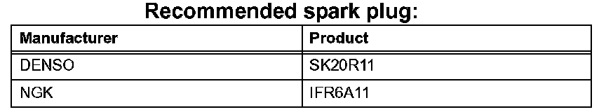 1.0 to 1.1 mm (0.039 to 0.043 in.) for new spark plug