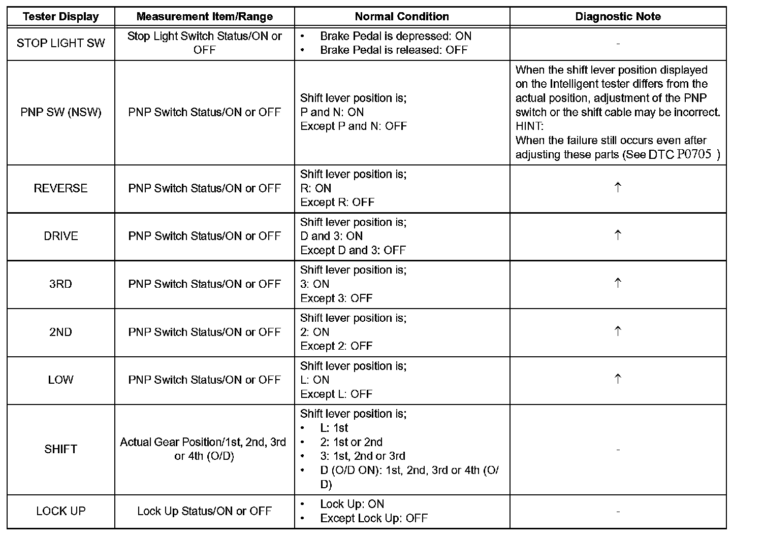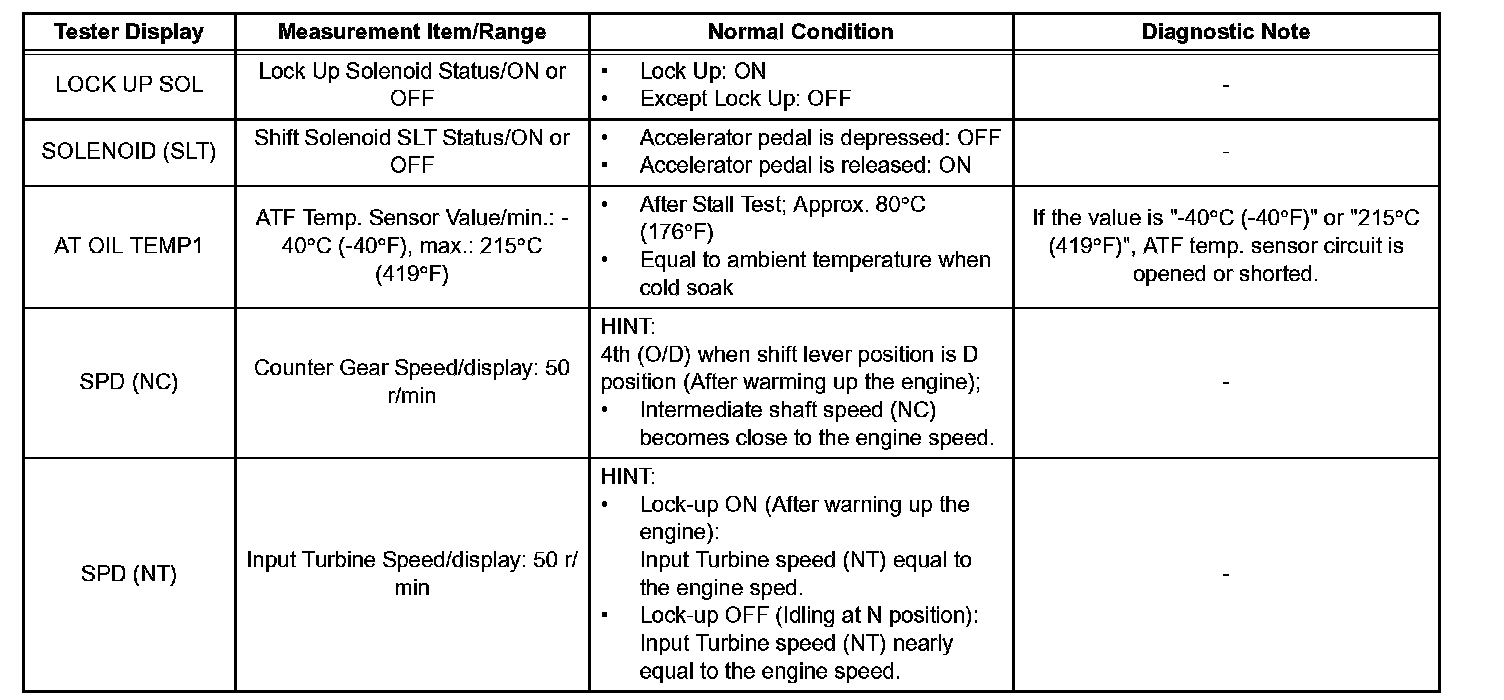 HINT: According to the DATA LIST displayed by the intelligent tester, you can read the value of the switch, sensor, actuator and so on without parts removal. Reading the DATA LIST as the first step of troubleshooting is one method to shorten labor time.