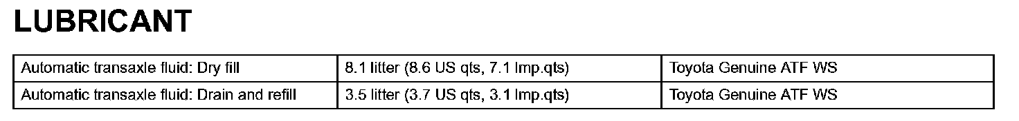 Automatic Transaxle - Lubricant: