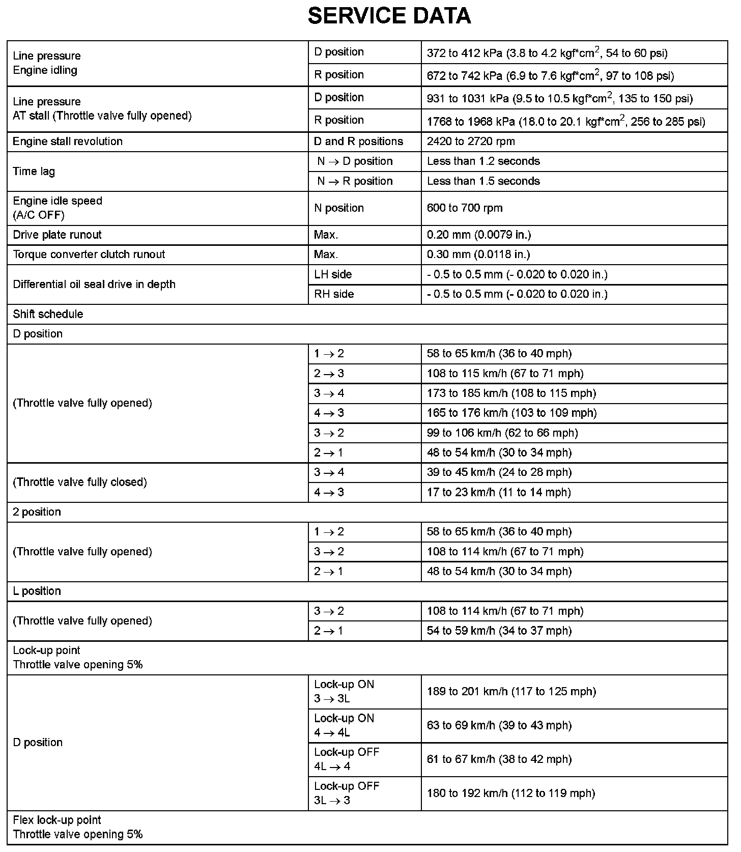 Automatic Transaxle - Service Data (Part 2):