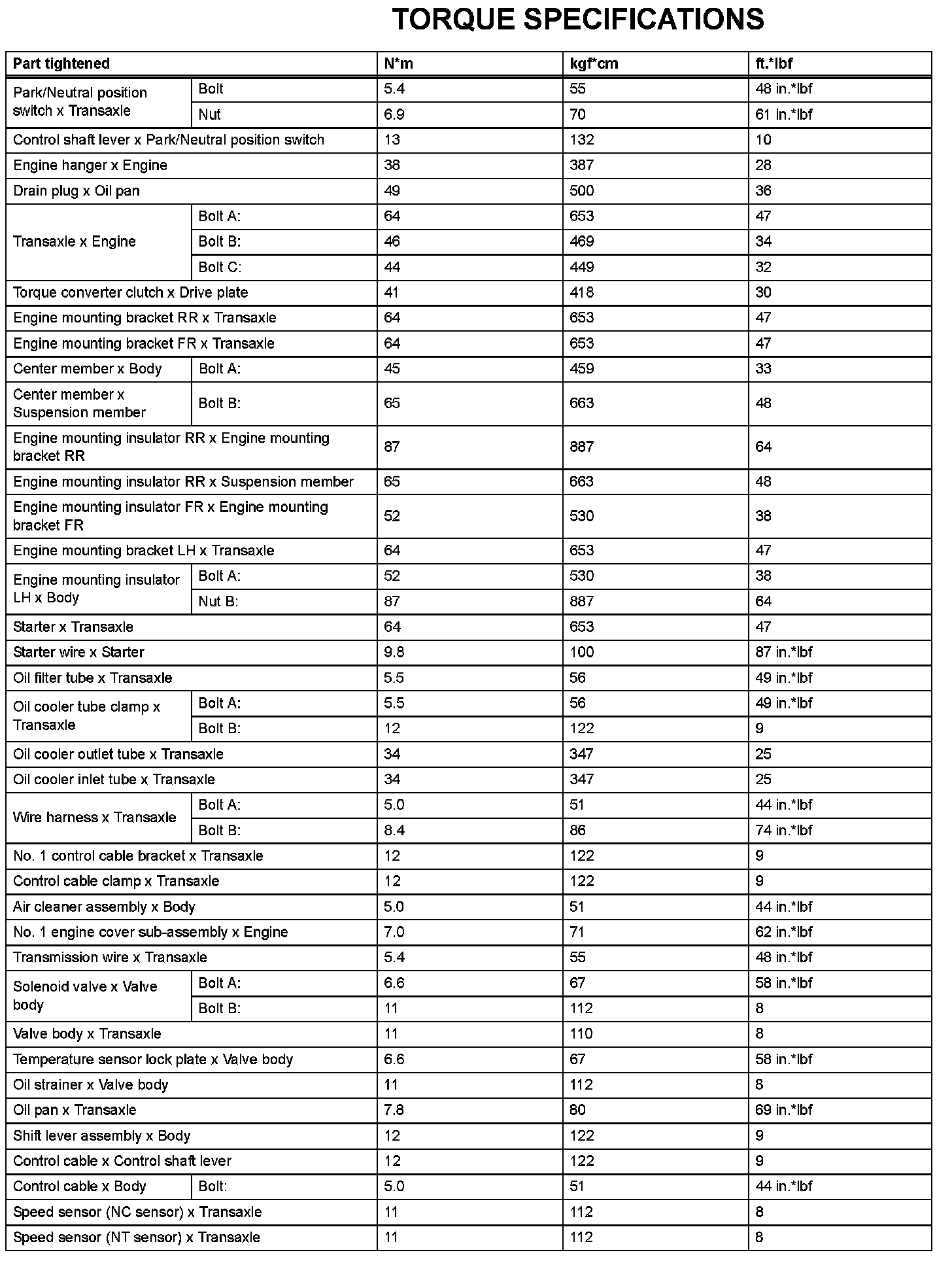 Automatic Transaxle - Torque Specifications: