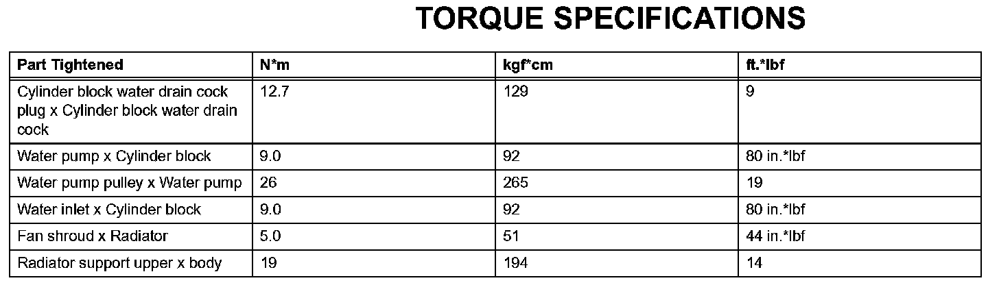 Cooling - Torque Specifications:
