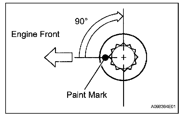 Retighten the cylinder head bolts so that the paint marks are at a 90° angle to the front.