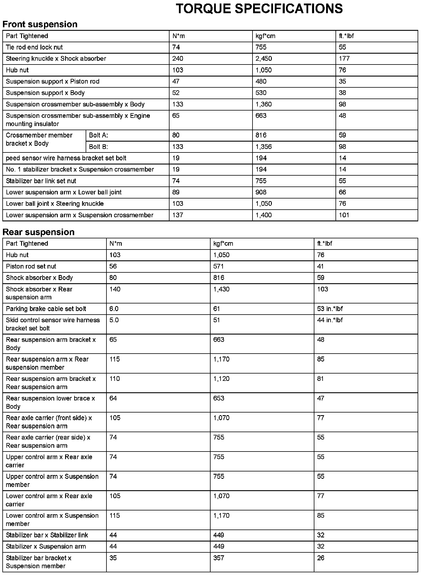 Suspension - Torque Specifications: