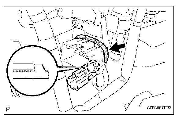 d. Using a small screwdriver, disconnect the claw fitting, and then remove the connector of the unlock warning switch.