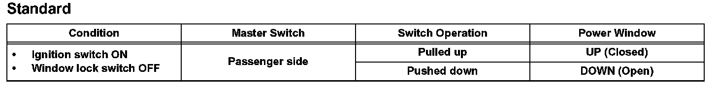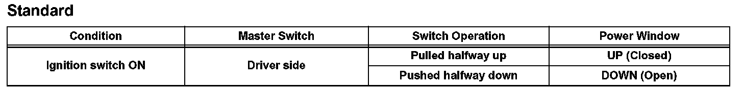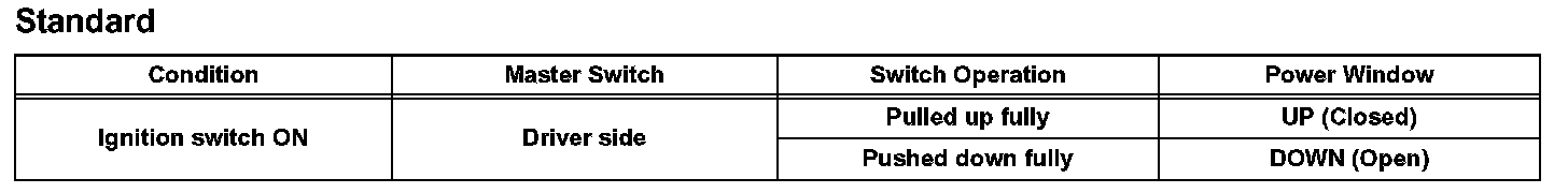 a. Check that the driver side power window operates as follows: