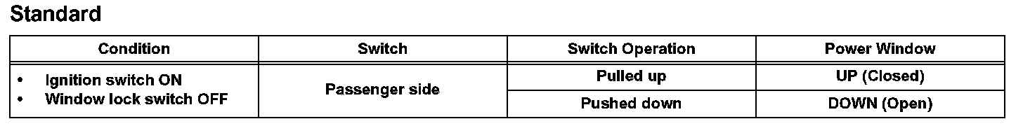 a. Check that the front passenger side power window operates as follows: