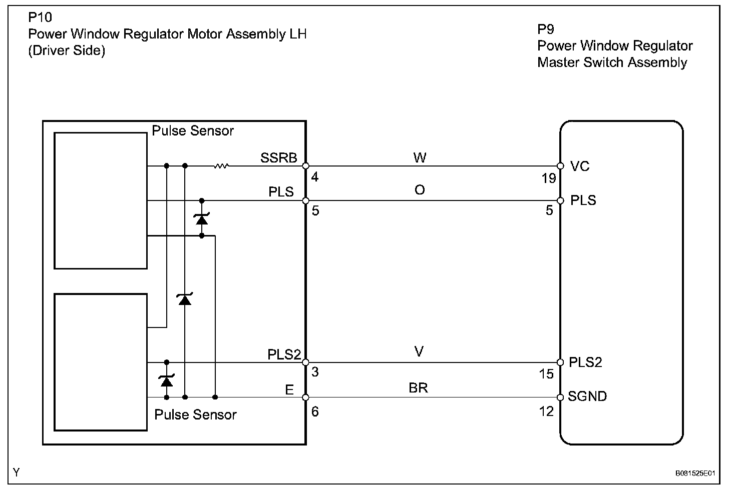 - The pulse sensor in the power window regulator motor has a malfunction.