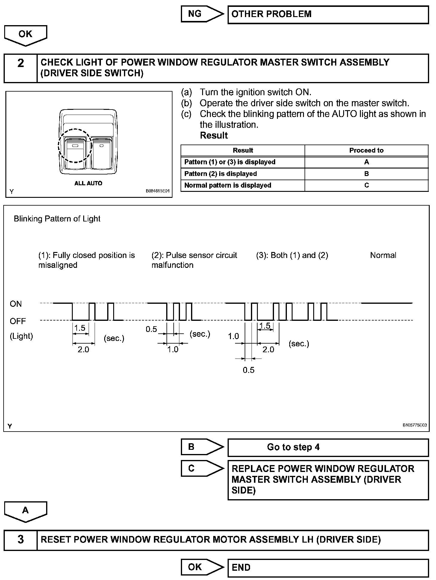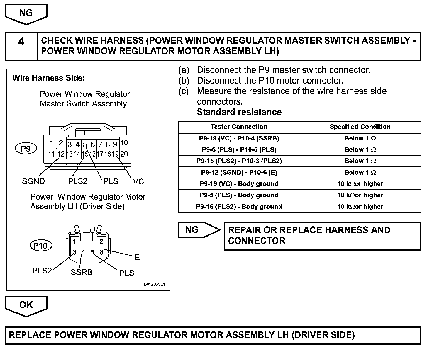 - The wiring between the power window regulator master switch and the corresponding power window regulator motor is open or short circuited.