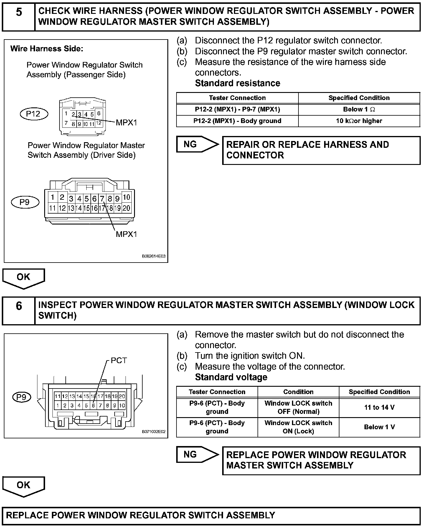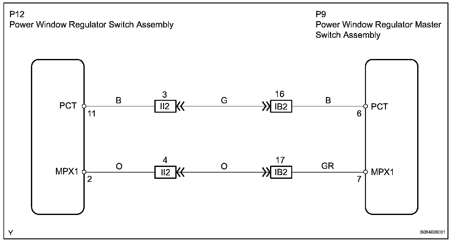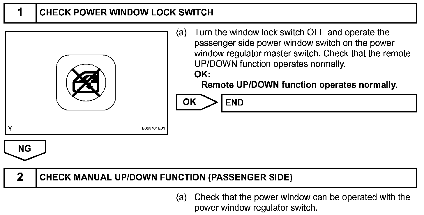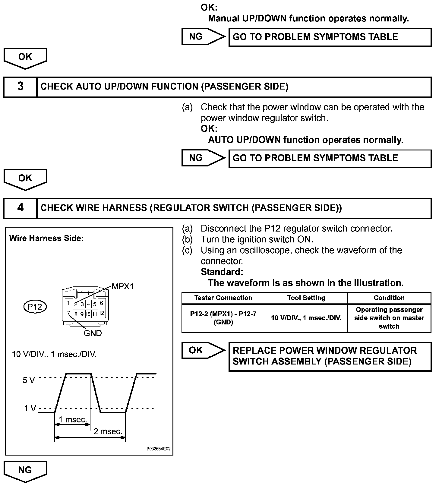 Operating the passenger side power window switch on the power window regulator master switch inputs a remote signal to the power window regulator switch. Then, the power window regulator switch drives the passenger side window motor.