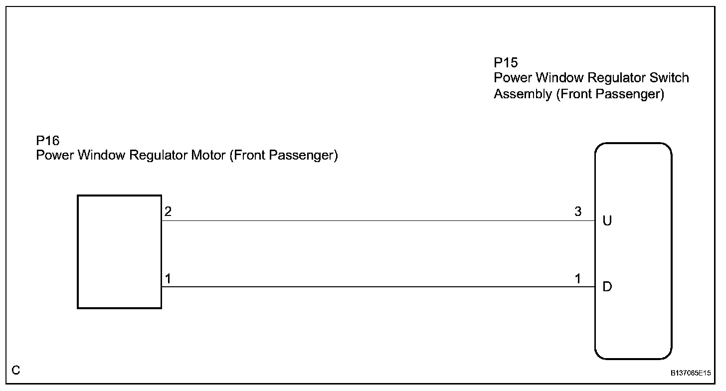 This circuit transmits signals from the power window regulator switch assembly (Front RH) to the power window regulator motor (Front RH).