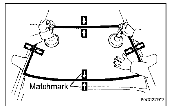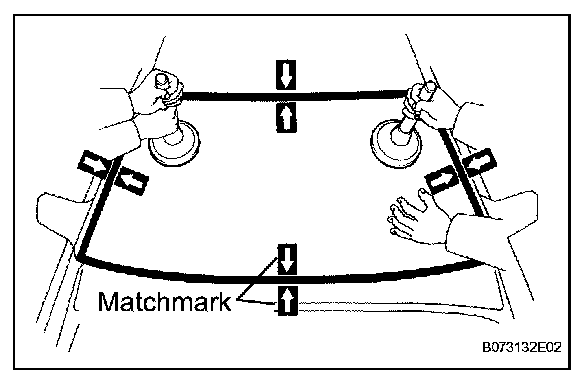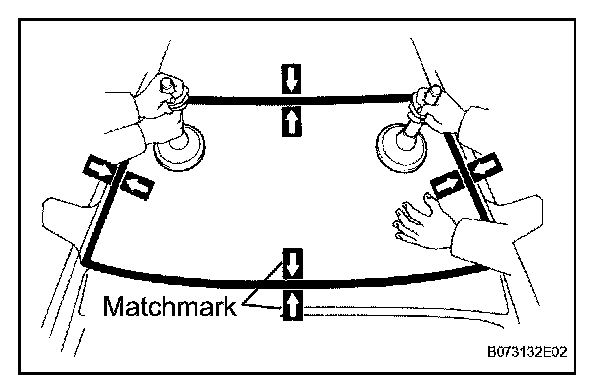 d. Place matchmarks over the glass and vehicle body on the locations indicated in the illustration.