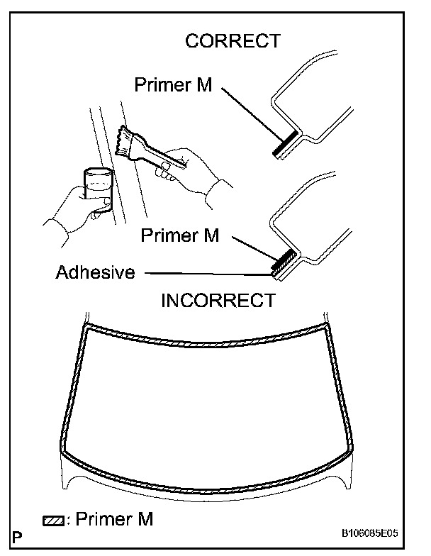 a. Using a brush or sponge, apply Primer G to the contact surface of the windshield glass.