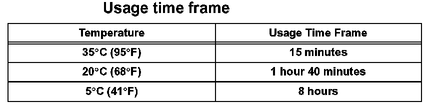 HINT: After cutting off the tip, use all adhesive within the time written in the table below.