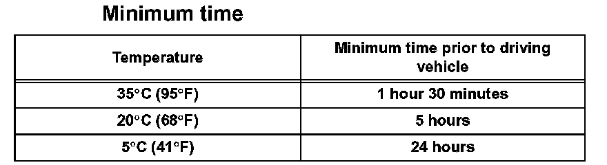 NOTICE: Do not drive the vehicle for the amount of time written in the table below.