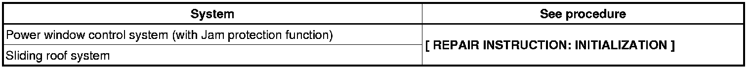 NOTE: When disconnecting the cable from the negative (-) battery terminal, initialize the following systems after the cable is reconnected.