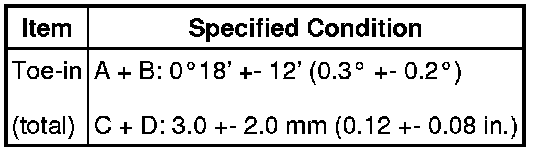 HINT: Adjust the camber and toe-in to the center of the specified ranges as much as possible.