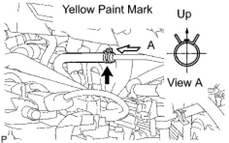 NOTE: Make sure that the paint mark and hose clamp are at the correct angle.