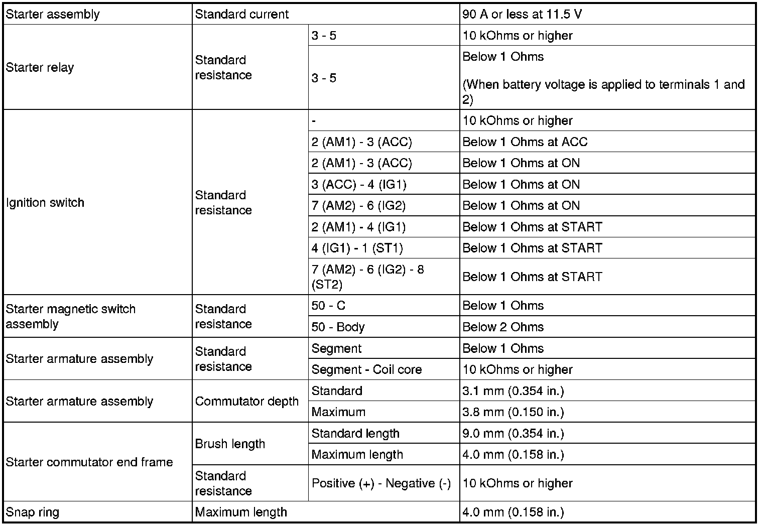 SERVICE SPECIFICATIONS: 2AZ-FE STARTING: SERVICE DATA
