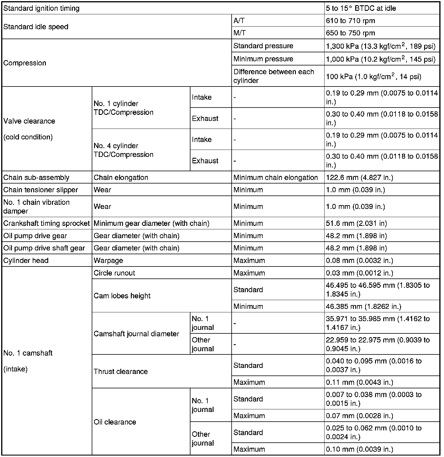 SERVICE SPECIFICATIONS: 2AZ-FE ENGINE MECHANICAL: SERVICE DATA