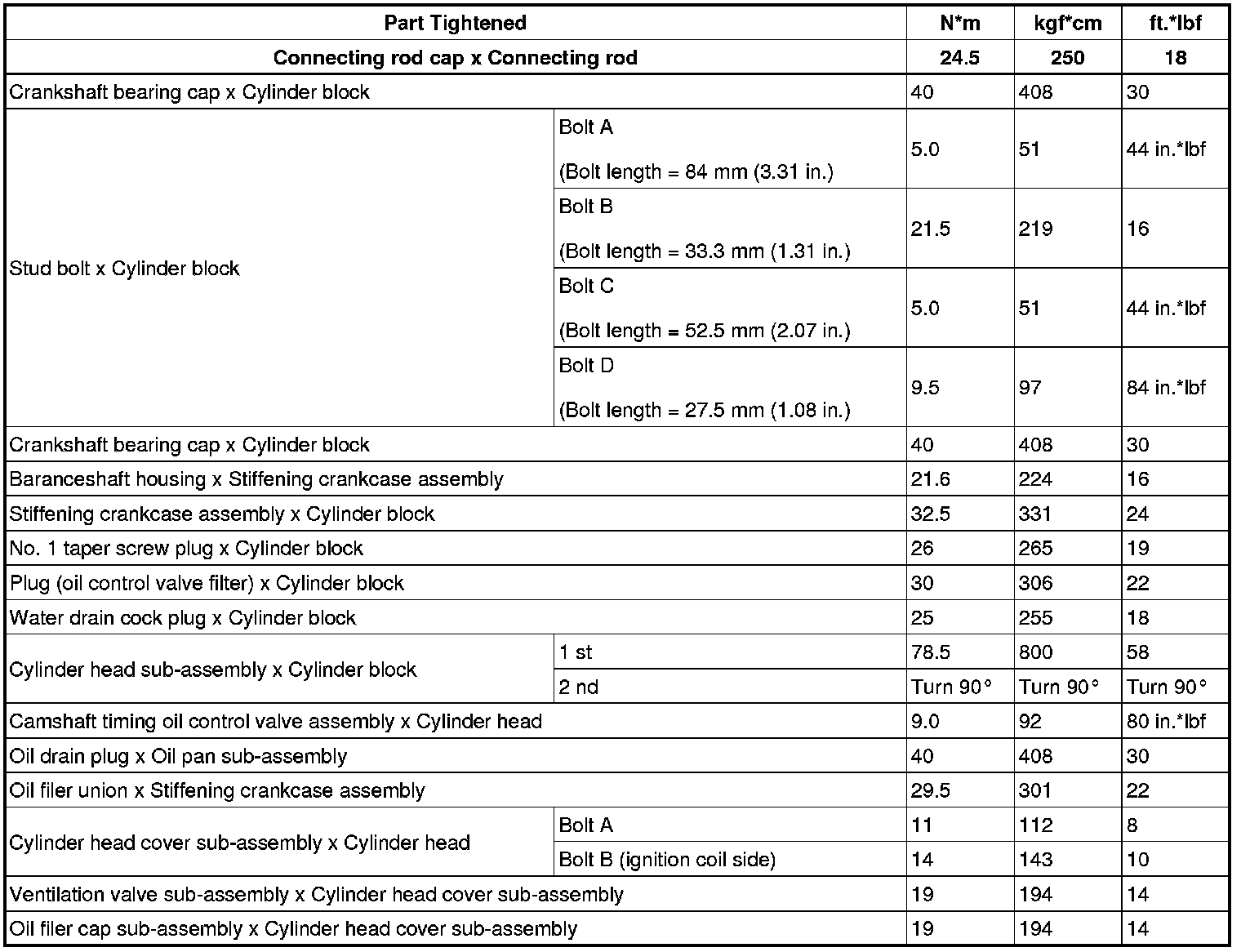SERVICE SPECIFICATIONS: 2AZ-FE ENGINE MECHANICAL: TORQUE SPECIFICATIONS