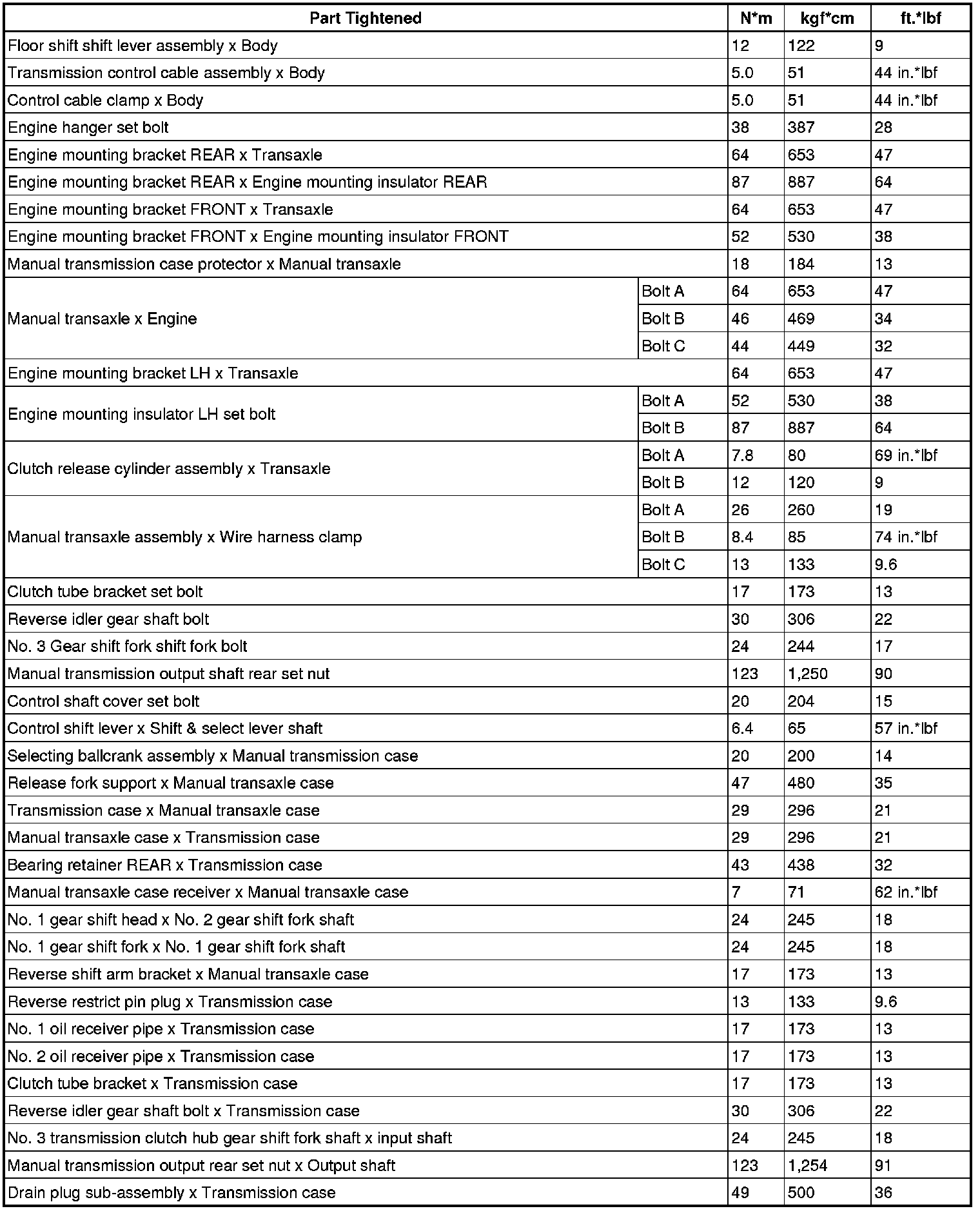 SERVICE SPECIFICATIONS: E350 MANUAL TRANSAXLE: TORQUE SPECIFICATIONS