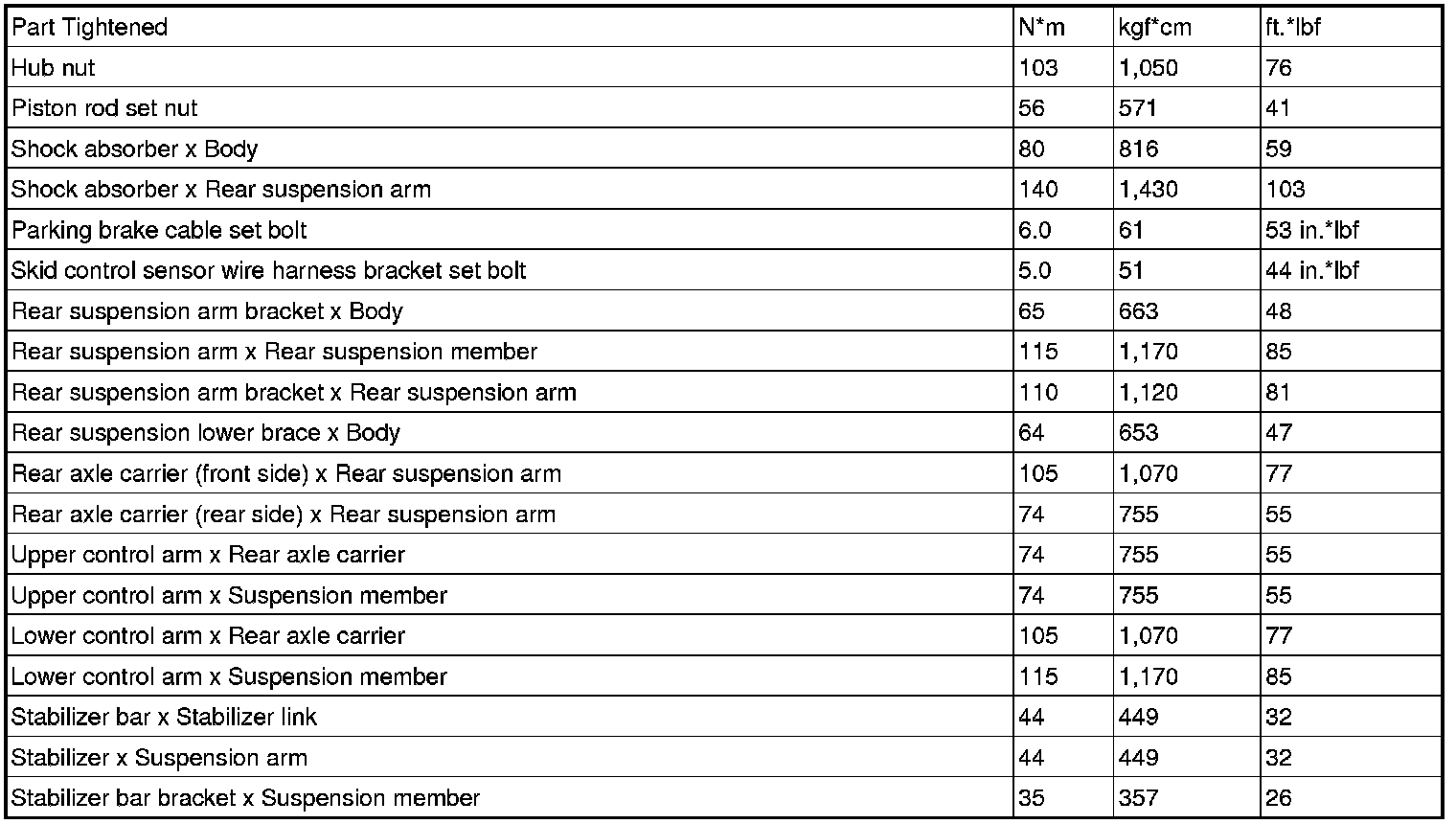 TORQUE SPECIFICATIONS