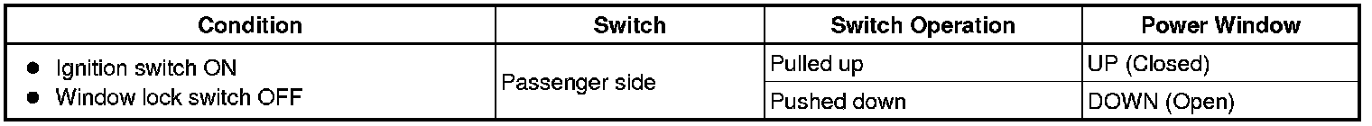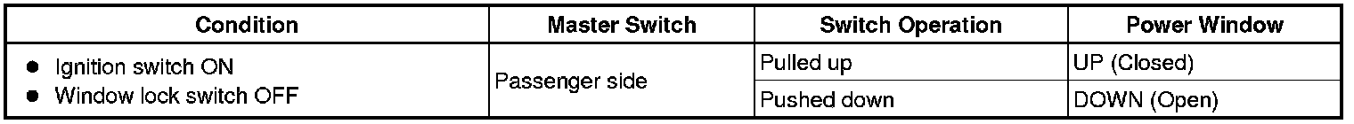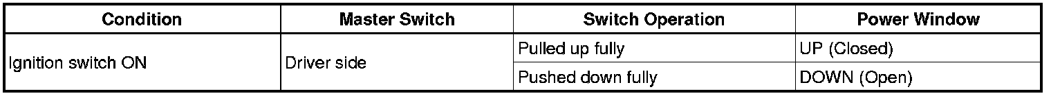 WINDSHIELD / WINDOWGLASS: POWER WINDOW CONTROL SYSTEM (w/o Jam Protection Function): OPERATION CHECK