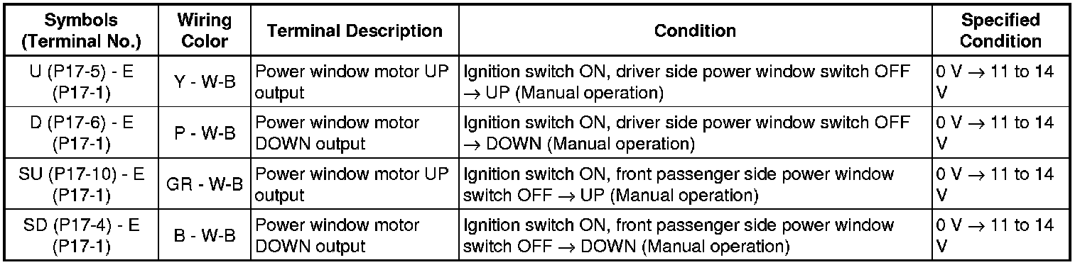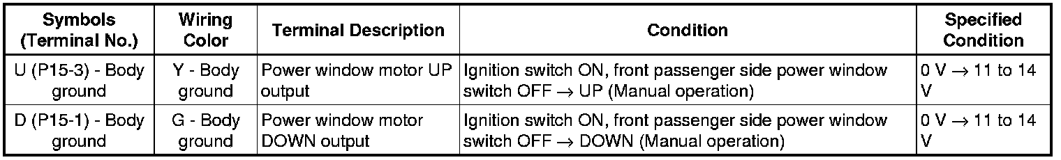 WINDSHIELD / WINDOWGLASS: POWER WINDOW CONTROL SYSTEM (w/o Jam Protection Function): TERMINALS OF ECU